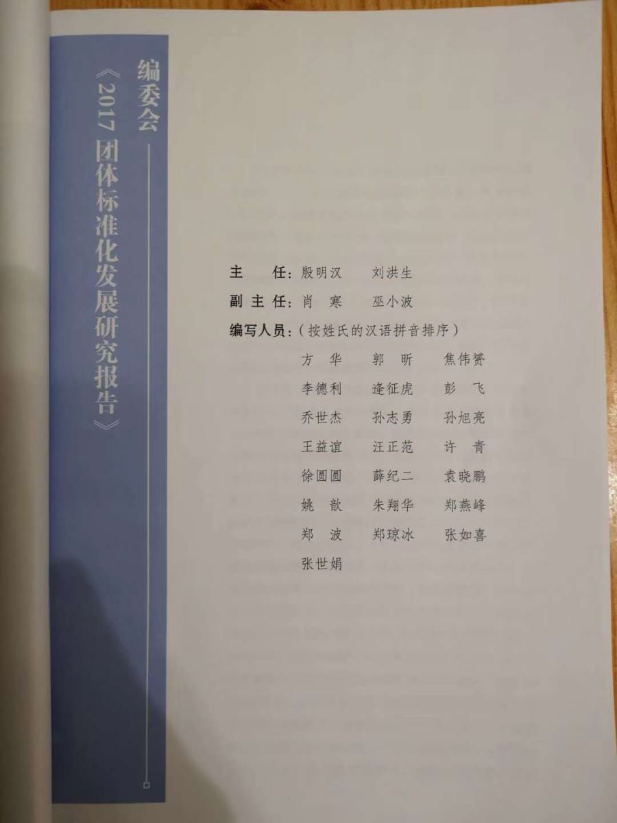 2018年12月18日,《2017團(tuán)體標(biāo)準(zhǔn)化發(fā)展研究報(bào)告》正式出版面世。該研究報(bào)告由中國(guó)標(biāo)準(zhǔn)化研究院組織編撰完成,國(guó)家標(biāo)準(zhǔn)委原副主任殷明漢、中國(guó)標(biāo)準(zhǔn)化研究院院長(zhǎng)劉洪生擔(dān)任編委會(huì)主任,國(guó)家市場(chǎng)監(jiān)督管理總局標(biāo)準(zhǔn)創(chuàng)新管理司副司長(zhǎng)肖寒、中國(guó)標(biāo)準(zhǔn)化研究院副院長(zhǎng)巫小波擔(dān)任編委會(huì)副主任,麥斯達(dá)夫標(biāo)準(zhǔn)化事務(wù)所首席執(zhí)行官鄭波位列編委會(huì)成員,并承擔(dān)了報(bào)告其中部分的執(zhí)筆起草工作。