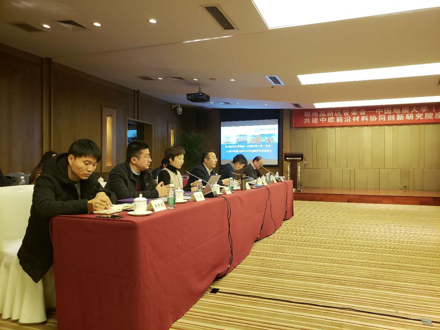 2019年1月9日,“鄭州市高新區(qū)管委會(huì)—中國(guó)地質(zhì)大學(xué)(北京)”共建中歐前沿材料協(xié)同創(chuàng)新研究院座談會(huì)在京召開(kāi)。鄭州高新區(qū)黨工委書記、管委會(huì)主任王新亭,改革開(kāi)放領(lǐng)導(dǎo)小組副組長(zhǎng)兼辦公室主任鄭彥松、投資促進(jìn)中心主任張煒煒、黨政辦公室副主任魯華雨、投資促進(jìn)中心副主任王楨等赴京參加會(huì)議,中國(guó)地質(zhì)大學(xué)(北京)副校長(zhǎng)萬(wàn)力、校長(zhǎng)助理兼發(fā)展規(guī)劃處處長(zhǎng)于光、科技處處長(zhǎng)趙志丹、珠寶學(xué)院黨委副書記周彥、科技處副處長(zhǎng)楊曉剛,工程技術(shù)學(xué)院副院長(zhǎng)岳文、王成彪教授等出席會(huì)議,麥斯達(dá)夫首席執(zhí)行官鄭波、高級(jí)副總裁李鵬、鄭州公司總經(jīng)理李寧等參加活動(dòng)。