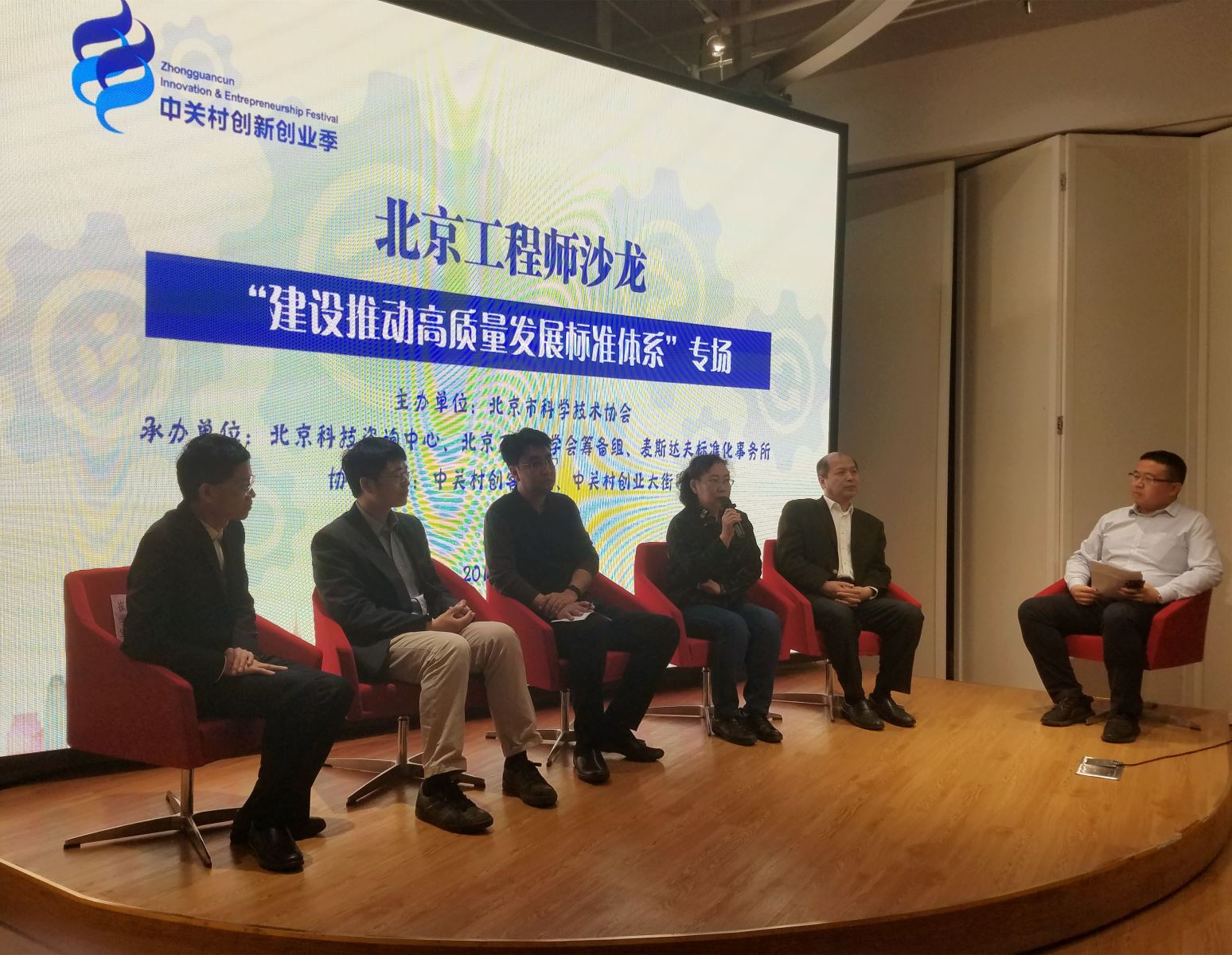 2019年4月29日,北京工程師沙龍第二期——“建設推動高質量發(fā)展標準體系”專場在海淀區(qū)中關村創(chuàng)客小鎮(zhèn)舉行。本次沙龍由北京市科協(xié)主辦,北京科技咨詢中心、北京工程師學會籌備組、麥斯達夫標準化事務所承辦,中關村創(chuàng)客小鎮(zhèn)、中關村創(chuàng)業(yè)大街協(xié)辦。本場沙龍是2019中關村創(chuàng)新創(chuàng)業(yè)季精彩系列活動之一。北京科技咨詢中心副主任張海新、科技咨詢部副部長袁潔,中關村創(chuàng)客小鎮(zhèn)技術總監(jiān)程清鴿、產(chǎn)品設計總監(jiān)李杰出席會議。沙龍由麥斯達夫標準化事務所首席執(zhí)行官鄭波主持。