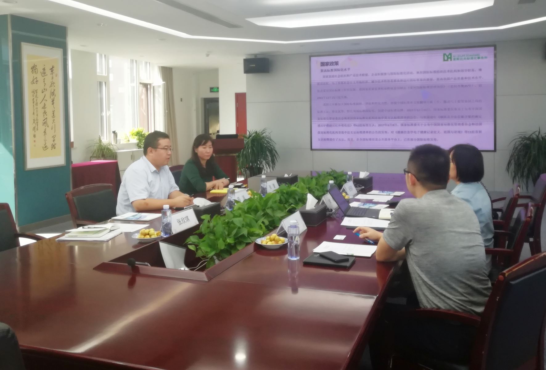 李娜介紹了華夏力鴻標(biāo)準(zhǔn)化工作基本情況,鄭波介紹了標(biāo)準(zhǔn)化工作領(lǐng)域政策方向、企業(yè)標(biāo)準(zhǔn)化工作如何助力企業(yè)發(fā)展等內(nèi)容, 雙方就標(biāo)準(zhǔn)化工作以及科研項(xiàng)目方面的工作進(jìn)行了深入交流。