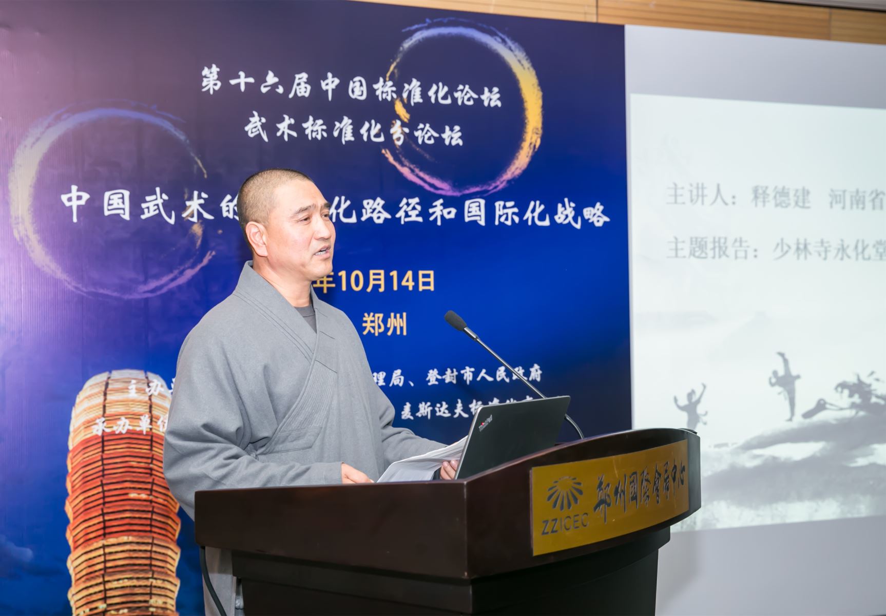 2019年10月14日,由中國標(biāo)準(zhǔn)化協(xié)會(huì)、鄭州市人民政府主辦,鄭州市市場(chǎng)監(jiān)督管理局承辦的第十六屆中國標(biāo)準(zhǔn)化論壇在鄭州國際會(huì)展中心舉行。繼14日上午的論壇開幕式暨主旨報(bào)告之后,武術(shù)標(biāo)準(zhǔn)化分論壇在會(huì)展中心102會(huì)議室拉開帷幕。本次武術(shù)標(biāo)準(zhǔn)化分論壇由鄭州市市場(chǎng)監(jiān)督管理局、登封市人民政府主辦,登封市市場(chǎng)監(jiān)督管理局和麥斯達(dá)夫標(biāo)準(zhǔn)化事務(wù)所承辦。